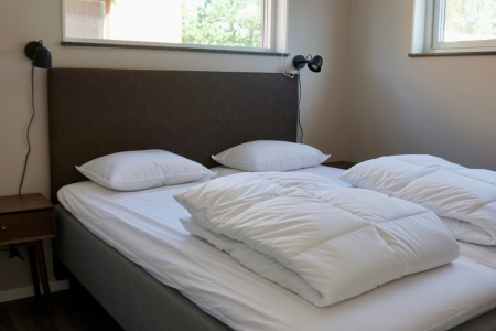 Denna hemtrevliga och charmiga stuga erbjuder gott om plats för upp till åtta personer, perfekt för både familjesemestern och kompisgänget. Här finns ett rymligt master bedroom med en 160 cm dubbelsäng, ett sovrum med två praktiska våningssängar och en bekväm bäddsoffa i allrummet. Ta med egna sängkläder eller hyr dem enkelt i receptionen.