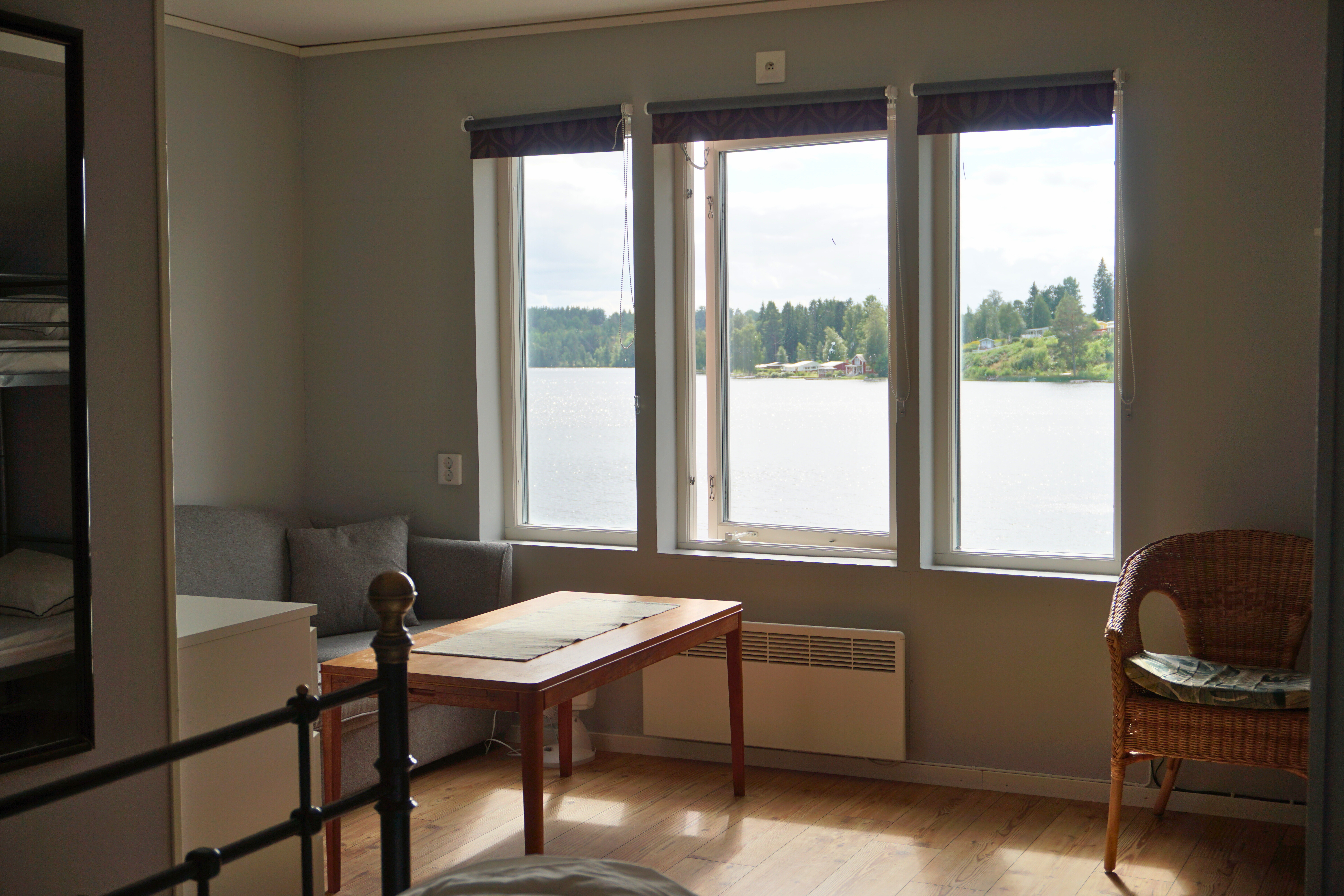 Alphyddan 5 är ett rymligt rum beläget på andra våningen med en fantastisk utsikt över sjön Nossen. Här kan ni bo upp till 6 personer, och rummet är utrustat med en dubbelsäng, en våningssäng och en bäddsoffa. Ta med egna sängkläder och handdukar eller hyr dem enkelt i receptionen.
