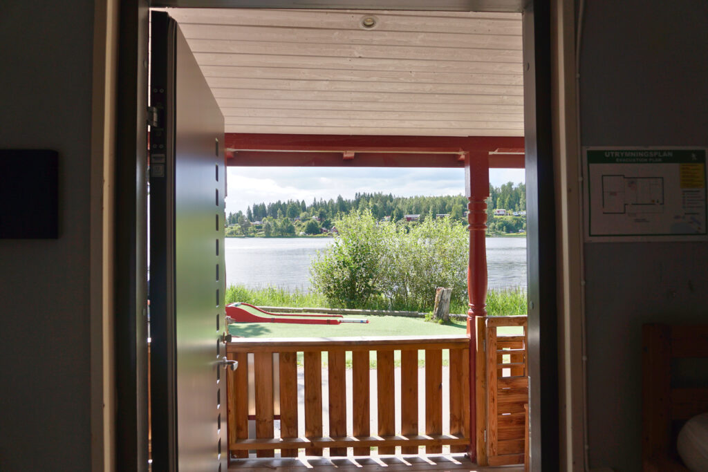 Alphyddan 4 has its own entrance from the veranda on the ground floor, giving the feeling of staying in a small private cabin. The room is equipped with seating and two bunk beds, one of which has an extra wide lower bunk, offering a total of 5 beds. If you choose to stay in this room, you will also have a private toilet and shower.