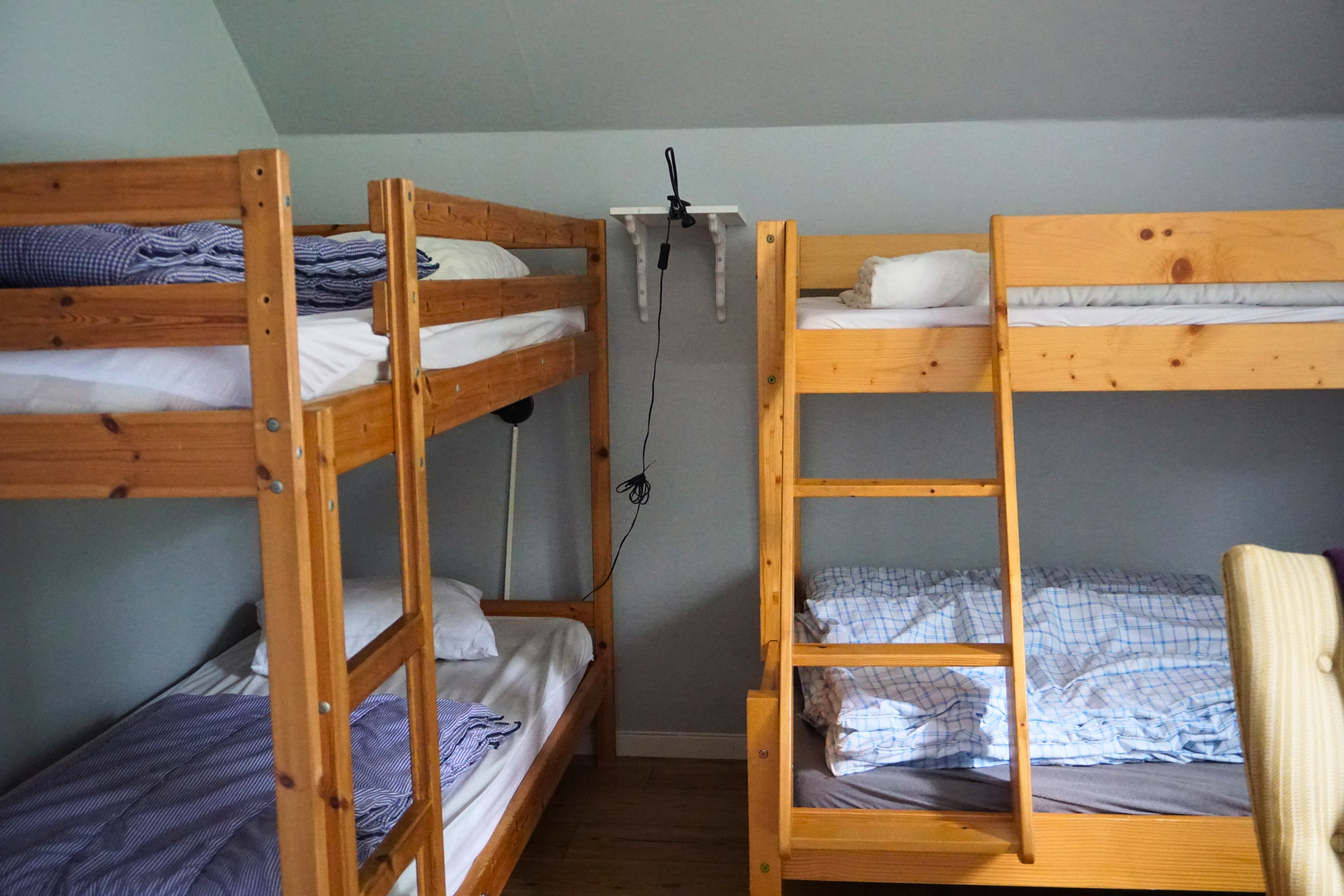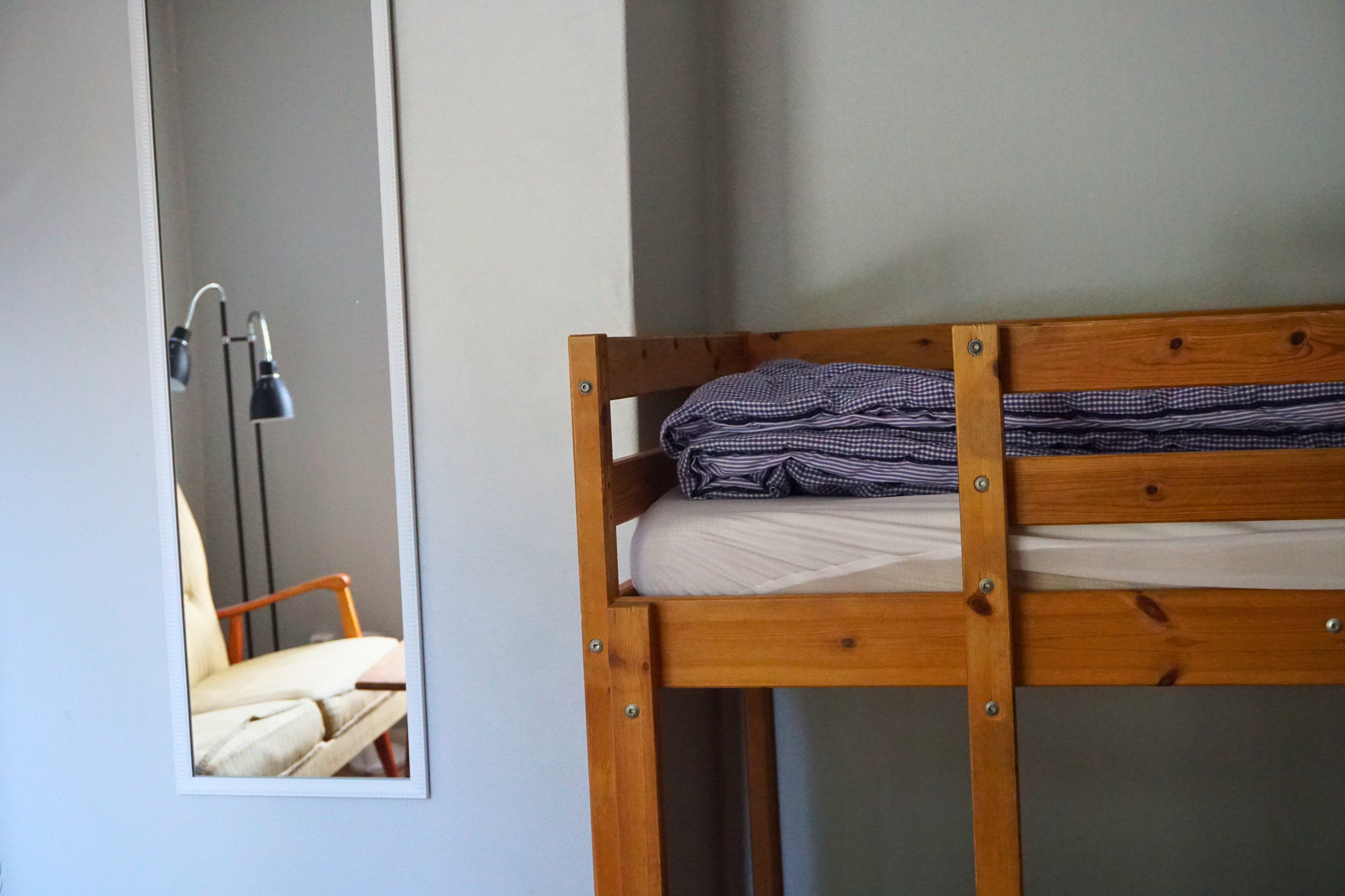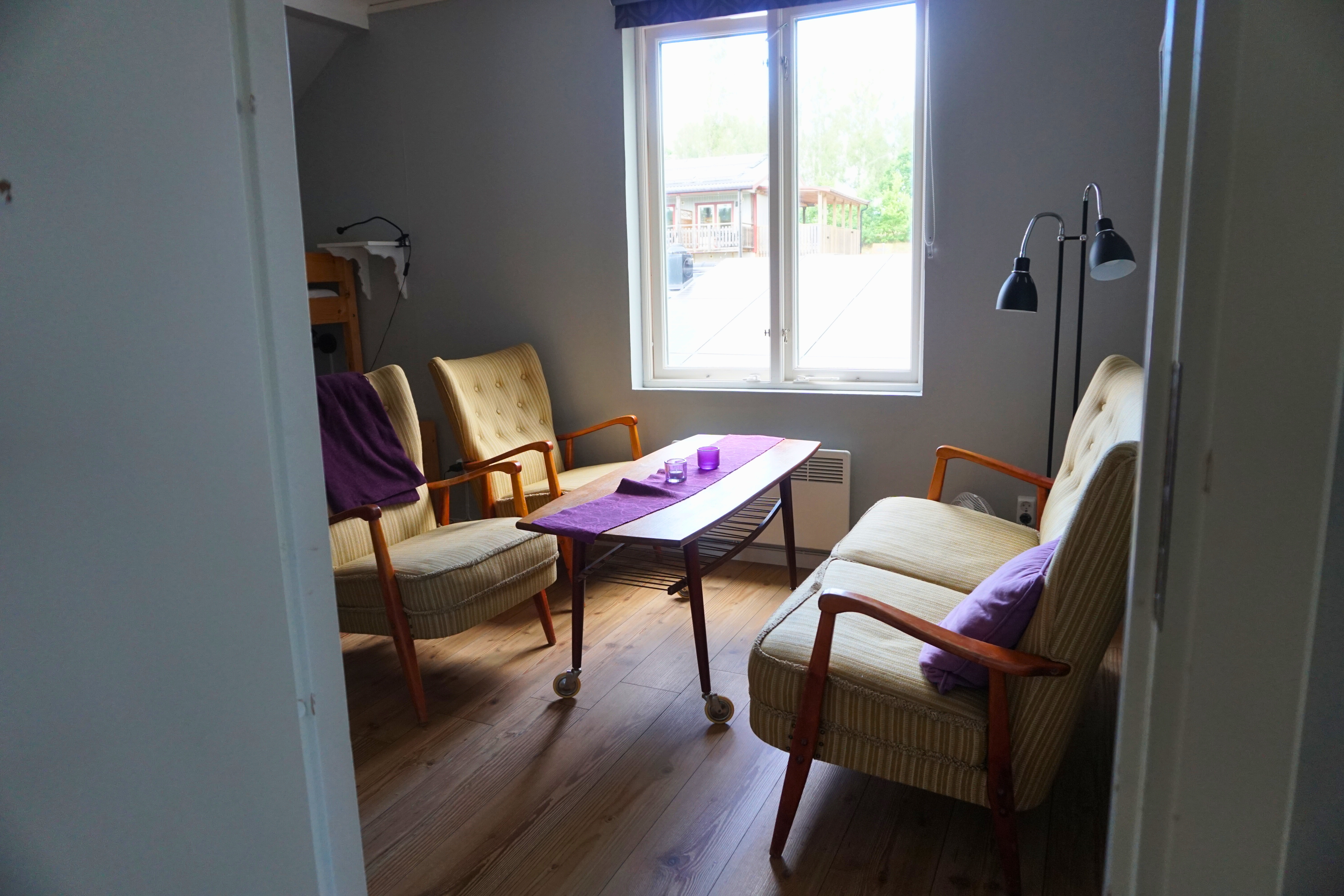 Alphyddan 6 is a lovely family room on the second floor of the facility’s oldest and most beautiful building. The tastefully decorated room features two bunk beds, one of which has a wide lower bunk, offering a total of five beds. The room also includes a sofa and armchairs, inviting cozy evenings with the whole family. It faces east and offers a view of the large green areas. Bring your own bed linen and towels, or rent them easily at the reception.